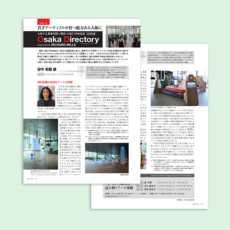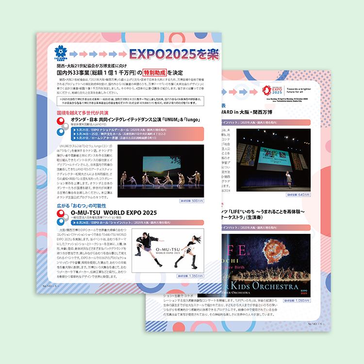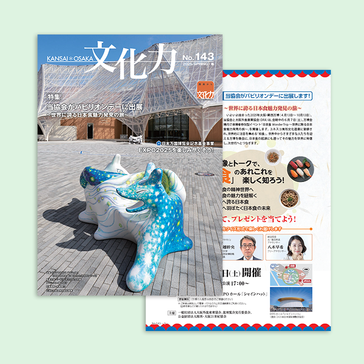 "関西・大阪21世紀協会の取り組みをはじめ、芸術、学術、技術、祭事、生活文化など、さまざまな分野の文化資源や人材を発信。賛助会員をはじめ、公立図書館や大学、高校、公的機関などへ配布(1万部)